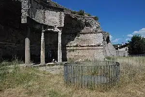 The sanctuary of Fortuna Primigenia was an ancient Roman, religious complex in Praeneste (now Palestrina, 35 km east of Rome) founded in 204 BC by Publius Sempronius Tuditanus. The temple within the sanctuary was dedicated to the goddess Fortuna Primigenia, or Fortune of the First Born.[1] Parents brought their newly-born first child to the temple in order to improve its likelihood of surviving infancy and perpetuating the gens.