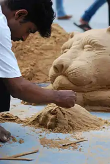 Sand sculptor at work at the Goa Sand Art Festival