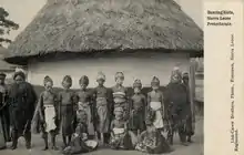 The ceremony that follows initiation is comparable to a graduation ceremony. The initiates are all dressed in white cotton dresses and head veils, and they sing and dance for everyone in the community to watch.[11] After, each proud initiate stands with her family and friends, donning an outfit signifying she will never need to be initiated again.[11] The next day, the girls model self-control by sitting still while others celebrate their achievement.[11] The men express their interest in the initiated girls as future brides and celebrate their virtues of virginity and faithfulness.[13]