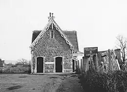 The Yatton to Witham line closed to passengers in September 1963[2] and Yatton-Cheddar closed to goods in October 1964. Sandford and Banwell station was used initially by Somerset County Council highways department for storage and was later taken over by a local company, Sandford Stone, which kept it well-preserved until going into liquidation. The site has since been redeveloped as "Sandford Station Care Village" a sheltered housing complex. Two period open wagons and a BR coach stand on a short section of track.