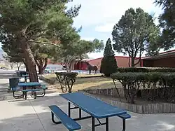 The school opened in 1958 and was originally constructed to hold between 1,800 and 2,000 students at a cost of $1.3 million.[5] The smaller Yucca school, located east of the main building, was completed in 1959 to house elementary students.[6] The Yucca school was phased out as an elementary school in 1974 due to low enrollment, and was used as an annex to Sandia.[7]