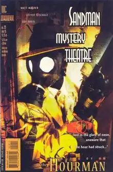 Sandman Mystery Theatre was an ongoing comic book series published by Vertigo Comics, the mature-readers imprint of DC Comics. It ran for 70 issues, one annual, and a cross-over special between 1993 and 1999 and retells the adventures of the Sandman, a vigilante whose main weapon is a gun that fires sleeping gas, originally created by DC in the Golden Age of Comic Books. In a similar vein to Batman, the Sandman possesses little to no superhuman powers, though he has minor precognitive abilities through his prophetic dreams, and relies on his detective skills and inventions.