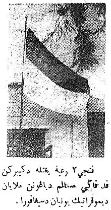 According to the book written by Kamarudin Jaffar, Dr. Burhanuddin Al Helmy: Malay and Islamic politics, Dr Burhanuddin has led the Malayan delegation in this conference. The presence of Dr. Burhanuddin, who holds the position of PKMM Advisor, has opened the opportunity for him to meet and discuss movements against colonialism together with the independence leaders of Asian countries.[17] Based on the sources of information, several conclusions can be made that the flag of the Young Malay Union Association, nicknamed Sang Saka Malaya, was first designed in 1947, but its design was not the same as that carried by the participants in the Promise of Democracy.[15][16]