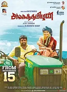 Sangathamizhan (transl. Ancient Tamilian) is a 2019 Indian Tamil-language action drama film[2] written and directed by Vijay Chandar. The film stars Vijay Sethupathi in the title role with Nivetha Pethuraj and Raashii Khanna, Soori, Nassar, Ravi Kishan, and Ashutosh Rana playing pivotal roles.[3] The music is composed by Vivek-Mervin, and cinematography was handled by R. Velraj. Principal photography reportedly commenced during February 2019 in Hyderabad. The film was released on 15 November 2019. It received highly negative reviews and was a flop at the box-office.[4][5]