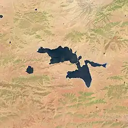 Sangiin Dalai Lake (Mongolian: Сангийн далай нуур) is a salt water lake in northern Mongolia, located at the border between the Tsagaan-Uul, Shine-Ider, and Bürentogtokh sums of Khövsgöl aimag, and the Ikh-Uul sum of Zavkhan aimag. It is surrounded by mountains, hills, and rocks. The 8.4 Mw Bolnai earthquake occurred nearby on July 23, 1905.[1]
