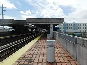 Santa Clara station is a station on the Metrorail rapid transit system in the industrial district of the Allapattah neighborhood in Miami, Florida. This station is located near the intersection of Northwest 12th Avenue (State Road 933) and 20th Street. It opened to service December 17, 1984. [1] Along with Brownsville station, Santa Clara is generally the lowest ridership station on the system.[3]