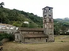 Santa Maria Extra Moenia (St Mary Outside the Walls), also called Santa Maria della Nave is an early Romanesque-style, Roman Catholic church complex located just outside to the South-West of the town of Antrodoco, province of Rieti, region of Lazio, central Italy. The complex includes a church and attached bell-tower with an adjacent but separate baptistry.