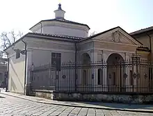The cupola was frescoed starting in 1588 by Giovanni Battista Tinti with an Assumption of Mary surrounded by the biblical figures of Mozes, Ezekiel, Gideon, and Jesse. The paintings on the walls of the nave were completed by Alessandro and his brother, Pier Antonio Bernabei.[1] The main altarpiece is a Pieta by the Venetian Sebastiano Ricci.