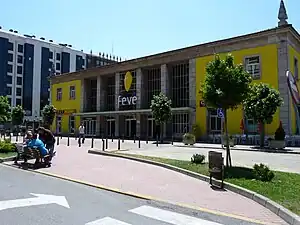 Santander railway station, also known as Santander ADIF to distinguish it from the Santander Feve station, is the main railway station of the Spanish city of Santander, Cantabria. It opened in 1858 and served over 3 million passengers in 2018. The station is actually a complex of two stations, one serving Renfe Iberian-gauge railways, and another adjacent serving FEVE metre-gauge services to Bilbao-Abando and Oviedo.