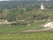 Vineyards in Santenay. Also visible in the image is the Sorine mill.