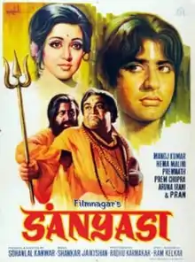 Sanyasi (transl.Hermit) is a 1975 Hindi film directed by Sohanlal Kanwar, starring Manoj Kumar and Hema Malini as leads. The film is noted for its music by Shankar Jaikishan. The film was the third highest grossing film of the year.[1]