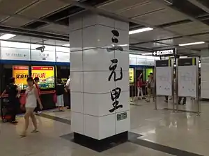 Sanyuanli Station (Chinese: 三元里站; Jyutping: saam1 jyun4 lei2 zaam6; Cantonese Yale: Sāam'yùhnléi Jaahm) is a metro station of Line 2 of the Guangzhou Metro. It started operations on the 29th of December, 2002. It is located at Sanyuanli in Baiyun District. It is adjacent to the Sanyuanli Anti-British Resistance Monument (三元里抗英纪念碑), Sanyuanli Coach Terminal (三元里客运站), Guangzhou Airport Expressway (广州机场高速公路) and Jingzhu Expressway.[1][2]