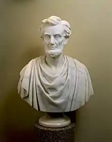 She produced at least five busts of Abraham Lincoln.[3] During the American Civil War, Ames directed the hospital situated in the U.S. Capitol. She was a good friend of Lincoln, either through her position at the hospital or the antislavery movement. Rufus Wilson, author of Lincoln in Portraiture, claimed that Ames knew Lincoln "in an intimate and friendly way" through her work at the hospital.[4][5] Fisher was one of the first sculptors of Lincoln, creating a marble bust of Lincoln for the U.S. Senate in 1866.[6] That sculpture is in the U.S. Capitol Building. Her busts of Lincoln are also located at the Massachusetts State House, the Williams College Museum of Art, the Lynn Historical Society, and the Woodmere Art Museum.[3]
