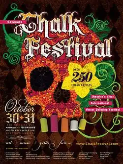 Sarasota Chalk Festival is an American cultural event of public art that celebrates a performing art form of pavement art also known as Italian street painting. It was founded in Sarasota, Florida by Denise Kowal. During the festival artists use chalk, and occasionally special paint, to paint the road surface to create large works of art while the viewer can watch the creative process.[1] The festival is focused around the street artists who are known as Madonnari in Italy or commonly referred to Street Painters, Chalk Artists, Sidewalk Artists, or Pavement Artists. The festival is held annually in downtown Sarasota in Burns Square.[2][3]