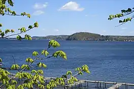 ![]() Saratoga Lake from the southwest with a view of Snake Hill | |