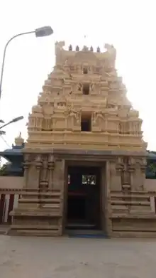 The presiding deity is Sarvaguneswarar, a form of Shiva who is all complete and perfect with all the good qualities. There is a shrine for the consort Sarvanga-Nayaki. The idol of Sarvanga Nayaki is 5.5 feet tall. There are also shrines for Ganesha, Murugan, Ardhanarisvara, Brahma, Durga, Bhairava, Chandikeshvara and Dakshinamurtty.