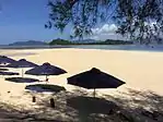 There are three other islands around Saronde, namely Bogisa, Mohinggito and Lampu island. Bogisa Island (9 hectares) has an elongated white sand beach, hills and forest with Saronde-like vegetation.[2] Mohinggito Island (30 hectares) is a marine conservation area that has a wide bay and is commonly used as a conscious mooring place for yachts visiting Saronde. Lampu Island (6 hectares) has a white sand beaches like Saronde. This island has flare lights and a government guardhouse. These islands are commonly visited by tourists and have become a package with Saronde tour visits.[3][4][5][6]