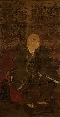 Born in Ōmi Province, Sasaki Takauji served the regent Hōjō Takatoki briefly, before aiding the shōgun Ashikaga Takauji in overthrowing the Kenmu Restoration (in which the Emperor Go-Daigo sought to regain real power) and establishing the Ashikaga shogunate. During his period of service to the shogunate, Sasaki Takauji served as shugo (military governor) of six provinces, and held a number of other important positions. He was also known for his waka and renga poetry, and contributed 81 of his poems to the first imperial anthology of renga, the Tsukubashū.[2] He is portrayed in the epic Taiheiki as a paragon of elegance and luxury, and as the quintessential military aristocrat. He exemplifies the extreme of extravagant taste known as "basara" where "the love of the extraordinary and accumulation of objects was paramount", and hosted events such as the twenty-day-long flower viewing event at Oharano.[3]