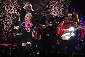 ![]() Alexander and Vadim Kolpakov with Madonna, during Sticky & Sweet Tour in 2008 | |