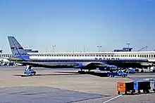 Saturn Airways Douglas DC-8-61CF at Chicago O'Hare Airport in 1971 when operating a passenger charter