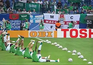 The Saudi Arabia national football team (Arabic: المنتخب السُّعُودِيّ لِكُرَّةُ الْقَدَم) represents Saudi Arabia in men's international football. They are known as Al-Suqour Al-Khodhur (The Green Falcons), a reference to their traditional colours of green and white, and represent both FIFA and the Asian Football Confederation (AFC).