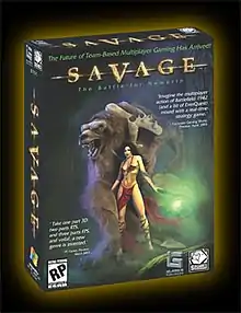 Savage: The Battle for Newerth is a 2003 video game combining aspects of the real-time strategy and first-person shooter genres, developed by S2 Games.[1] It takes place in a science fantasy distant future when mankind has rebuilt society after the apocalypse, but is threatened by intelligent beasts led by a sorceress.