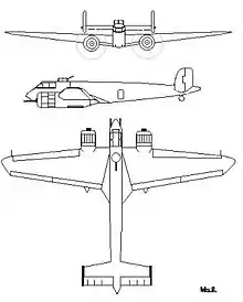 The SM.89 was intended to be a bomber/attack aircraft, something similar to Junkers Ju 88. The aircraft displayed some impressive features, but it was not a new project, rather an extrapolation from the earlier SM.84. The project utilized the wings, the aft fuselage and the mixed construction of the latter almost untouched, with a totally redesigned nose. The fuselage was made from a skeleton of steel tubes, covered with duralumin and wood back as far as the dorsal turret, the remainder of the fuselage being of wood and fabric construction. The wing was made of wood using three spars and a covering of compensate wood. The control surfaces comprised slats and flaps, and the ailerons, that were lowered partially with the flaps to increase lift.