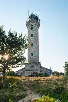 At a height of 36m above the sea, the light has a range of 30 nautical miles and consists of three flashes of white light every fifteen seconds.[1][8]
