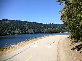 The Spring Valley Water Company purchased 2,200 acres (890 ha) named the "Sawyer Tract" by 1876.[3] After the construction of Crystal Springs Dam, which formed the Lower Crystal Springs Reservoir, the inn and much of the old road was flooded by 1888. A narrow, winding gravel access road was built along the present-day route of Sawyer Camp Trail. When the city of San Francisco took over the watershed lands, Sawyer Camp Trail was then a county road. The Water Department fenced it for the protection of San Francisco's drinking water. The mostly gravel road was open for vehicular traffic from dawn to dusk, until 1978.