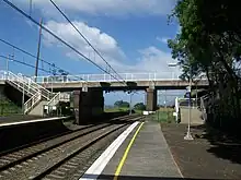 Scarborough Railway Station has two perimeter platforms, with Platform 1 on the west, Platform 2 on the east. The perimeters of the station are defined with dark green powder coated aluminium fencing. Platform 2 is accessed either via a driveway off First Street, or adjacent modern stairs, to the northeast of the First Street overbridge. The west platform is accessed via Railway Avenue to the west or by crossing the First Street overbridge.[2] North of Scarborough the double line becomes single to pass through Coalcliff Tunnel.