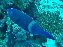 There are some fishes that choose to prey upon parrotfishes. Due to the habitat in which parrotfishes reside, sharks and eels are known to consume parrotfish in opportunistic instances due to the simultaneous occupation of coral reefs.[17] To combat this, some species of parrotfish secrete a mucus-like substance from their mouths to encapsulate their bodies while sleeping, masking its own scent.