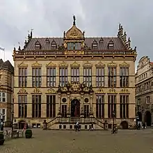 The Schütting, situated on the Marktplatz (market square) in Bremen, initially served the city's merchants and tradesmen as a guild house. In 1849, it became Bremen's chamber of commerce. Since 1973, it has been under monument protection.[1] It lies on the south site of the Bremen marketplaces directly across from the town hall.