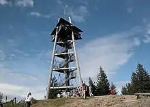 Built in 1981, and named after the former Mayor of Freiburg Eugen Keidel, the lookout built on the summit of the Schauinsland is the start of many hiking routes within the local mountainous region. From the viewing platform, roughly 20 metres (66 feet) high, Mont Blanc can also be seen, which is not possible at the base of the tower due to the ski resort "Haldenköpfle" just in front.