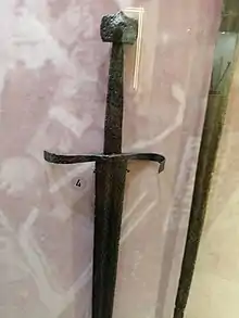 The oldest specimens are estimated to date to the last decades of the 14th century, a period when Serbia was in constant conflict.[2] The oldest mention is from the will of blacksmith Dobrič Bunisalić dating to 1391, held at the Ragusan Archives: "...doe spade schiavonesche...".[3]