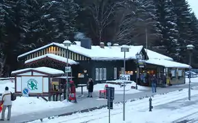 Schierke station (German: Bahnhof Schierke) is the railway station in the village of Schierke operated by the Harz Narrow Gauge Railways on the Brocken Railway in the Harz Mountains of central Germany. Schierke itself lies as the foot of the highest mountain in the Harz, the Brocken, and is located in the borough of Wernigerode in the federal state of Saxony-Anhalt.
