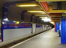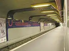 With its visible concrete walls partially covered by dark blue, orange and yellow plastic panels, Schloßstraße is an example of the 1970s pop-art design. Opened in 1974 by Schüler/Witte, it was planned to be a transfer station between U9 and the to-be-built U10. However, there is no current plan to establish the U10.[1]