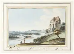 After 1535 the castle became the seat of one of the smallest vogtei in the Canton of Bern. In the period between 1535 and 1798 a total of 51 vogt ruled over the land. However, as one of the smallest and poorest vogtei, most office holders sought additional or other appointments as soon as possible.[3] In 1587 the castle was gutted by a fire. A suspected witch, Elsa Schiblerin, was accused of causing the fire and burned at the stake. Over the next few years the castle was rebuilt by the city of Bern.[4] The castle was rebuilt as a more comfortable home for the resident vogt. The Biberstein coat of arms was painted above the main gate in 1627 and in 1643 Hans Balthasar Fisch painted the Bernese coat of arms on the tower. A fire in 1784 threatened the castle, but a quick response limited the damage to the roof.[2]
