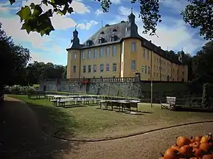 Castle Dyck (German: Schloss Dyck) is a moated castle in the Rhineland region of Germany. It is located in the municipality of Jüchen in Rhein-Kreis Neuss, North Rhine-Westphalia, between Grevenbroich and Mönchengladbach.