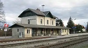 The Schneeberg Railway (German: Schneebergbahn) is a local railway line in Lower Austria running from Wiener Neustadt to the Hochschneeberg mountain. From Wiener Neustadt to Puchberg am Schneeberg it runs as a standard gauge, adhesion railway (main section) and from Puchberg am Schneeberg to the Hochschneeberg as a narrow-gauge, cog railway (extension).[1] The main section from Wiener Neustadt to Puchberg am Schneeberg had a branch to Wöllersdorf from the outset. The section built later from Sollenau to Feuerwerksanstalt (extension) is now closed and renaturalised.