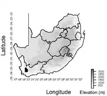 Schoenus albovaginatus has been observed growing in high mountain sites (> 900 m) in the southwestern mountains of South Africa, specifically in the Koue Bokkeveld and Hex River Mountain areas.[1] One collection has also been made in the area near Worcester.[1]