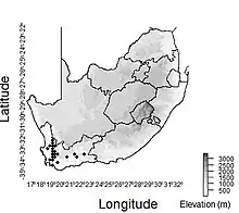 1. 1 2 3 4 5 6 Elliott, T.L.; Muasya, A.M. (2018). "A taxonomic revision of Schoenus compar - Schoenus pictus and allies (Cyperaceae, tribe Schoeneae) with three new species described from South Africa". South African Journal of Botany. 114: 303–315. doi:10.1016/j.sajb.2017.11.020.