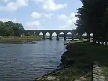 The S&S's main line was 15½ miles long.[2] It was one of several in Ireland built under the terms of the Tramways Act 1883.[1] It largely ran alongside roads, although a large 12-arched masonry viaduct was built over an inlet of Roaringwater Bay, and at times using gradients at steep as 1:30.[3]