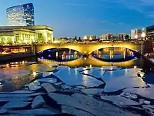 The Schuylkill River looking north toward Center City Philadelphia from South Street Bridge in January 2020