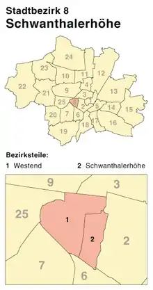 Schwanthalerhöhe (Central Bavarian: Schwanthalahäh), also called Westend, is a borough of Munich. It is located west of the city center and with a population of about 30,000 on just two square kilometers is one of Munich's most densely populated boroughs.[1]