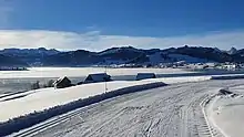 The Schwedentritt cross-country skiing trail (Loipe Schwedentritt in German) is a cross-country skiing trail in Einsiedeln in Switzerland. The trail is groomed in both skating and classic style.[1] It begins at Einsiedeln Abbey, then leads along Sihlsee and finally through the Schwantenau high moorland.[1][2] The total distance is 21.1 km (Half marathon), but can be shortened to 4, 12 or 15 km.[1][3] Due to the numerous inclines, the trail is physically demanding. Since the landscape with its bogs and birches is reminiscent of Sweden, the trail was named Schwedentritt (literally Sweden's step) in the 1970s.[4]