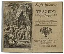 Scipio Africanus is a 1718 historical tragedy by the British writer Charles Beckingham. It is inspired by the story of The Continence of Scipio, featuring the Ancient Roman general Scipio Africanus during the Second Punic War.