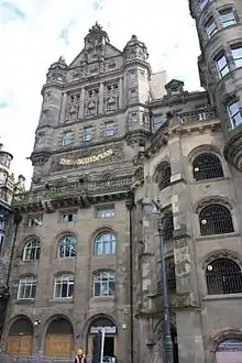 In 1860, The Scotsman obtained a purpose built office on Cockburn Street in Edinburgh designed in the Scots baronial style by the architects Peddie & Kinnear.[12] This backed onto their original offices on the Royal Mile. The building bears the initials "JR" for John Ritchie, the founder of the company. On 19 December 1904,[13] they moved to huge new offices at the top of the street, facing onto North Bridge, designed by Dunn & Findlay (Findlay being the son of the then owner). This huge building had taken three years to build and also had connected printworks on Market Street (now the City Art Centre). The printworks connected below road level direct to Waverley station in a highly efficient production line.