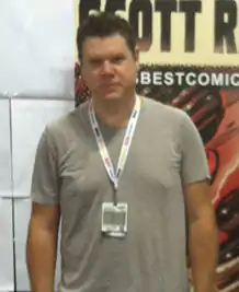Scott Reed (born 1970) is an American illustrator, comic book artist and author from Reedsville, Ohio. His earliest comic work as a writer and inker appeared in Silverwolf Comics (Greater Mercury Comics) Eradicators in 1990. In 1993, he worked on-staff as an inker for Malibu Comics until 1996, when he was hired by Dark Horse Comics to provide inks for Godzilla and G.I. Joe Extreme comic book mini-series. For the next several years, he produced creator-owned online comics under his self-publishing label Webs Best Comics. In 2007, he and artist Shane White collaborated on The Overman, an apocalyptic noir science fiction mini-series published by Image Comics. In 2010, Reed wrote two mini-series for Marvel Comics, Realm of Kings: Son of Hulk, and Incredible Hulks: Enigma Force, which re-introduced several Microverse characters into the Marvel Universe. Both series were penciled by Miguel Munera. In 2012, Reed wrote, illustrated and published Saga Of A Doomed Universe, a graphic novel distributed digitally with Comixology and included in Boing-Boing's 'Best Damn Comics of the Year' of 2012. From 2016-2018, Reed worked as a colorist on MidWalker, a comic book mini-series published by Fierce Comics. The first issue of Reed's latest comic book mini-series, Hark, was published in 2020 under his creator-owned label Beyond Forward Comics and distributed by Comixology and IndyPlanet.