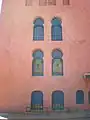 Still somewhat shocking today is that the building was, and still is (as of 2014) clad in pink colored stucco.