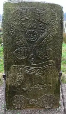The Pictish language offers considerable difficulties. It is a term used for the language(s) thought to have been spoken by the Picts, the people of northern and central Scotland in the Early Middle Ages. It may have been a fifth branch of Brythonic; Kenneth H. Jackson thought that the evidence is weak,[8] but Katherine Forsyth disagreed with his argument.[9] The idea that a distinct Pictish language was perceived at some point is attested clearly in Bede's early 8th-century Historia ecclesiastica gentis Anglorum, which names it as distinct from both Old Welsh and Old Gaelic.[10] However, there is virtually no direct attestation of Pictish short of the names of people found on monuments in the lands controlled by the Picts - the area north of the Forth-Clyde line in the Early Middle Ages.[11] Many of these monuments include elaborate carved symbols, but an understanding of their significance has so far proved as elusive as interpretation of the few written fragments, which have been described as resembling an "odd sort of gibberish".[12] Nonetheless, there is significant indirect place-name evidence for the Picts use of Brythonic or P-Celtic.[11] The term "Pritennic" is sometimes used to refer to the proto-Pictish language spoken in this area during the Iron Age.
